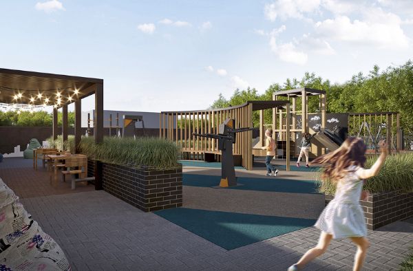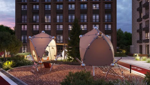 Двор в Немецком Доме особенный! Он поднят над уровнем земли и располагается на кровле паркинга. От улицы Удмуртской он укрыт фасадом самого дома, близлежащим торговым центром и специально предусмотренной кирпичной стеной. Ландшафтный дизайн двора получился ярким и необычным! Ограждение двора по периметру обеспечит приватность и создаст комфортные условия для игр и отдыха жильцов. Здесь будут установлены современные игровые и спортивные комплексы, места для игр малышей и отдыха взрослых. В таком дворе каждый житель найдет занятие по душе! Для малышей мы устанавливаем балансиры, горку и большой песочник. Для ребят постарше — интересную, разноплановую лазалку и качели-гнёзда.