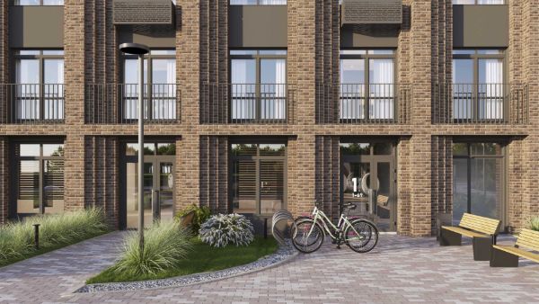 На входах предусмотрено грязезащитное покрытие, утопленное в пол. Вход в подъезд со стороны двора расположен под лоджией второго этажа, это защитит вас от дождя и снега в момент открывания двери. Дополнительные входы предусмотрены на первом этаже - со стороны парковки, и в цокольном этаже - из паркинга. На первом этаже размещаем просторную колясочную. Вы сможете оставить коляску, велосипед или электросамокат на первом этаже, не поднимая их до своей квартиры, и они не будут занимать место в вашей прихожей или кладовке. В колясочной предусмотрен поддон для мытья колес велосипедов и детских колясок, а также лап ваших домашних питомцев. Также на первом этаже предусмотрена стойка для организации рабочего места консьержа. Перед входами в подъезды предусмотрены велопарковки.